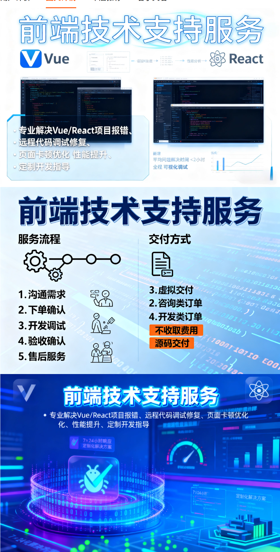 【前端技术服务】Vue/React远程调试修复与性能优化指导服务