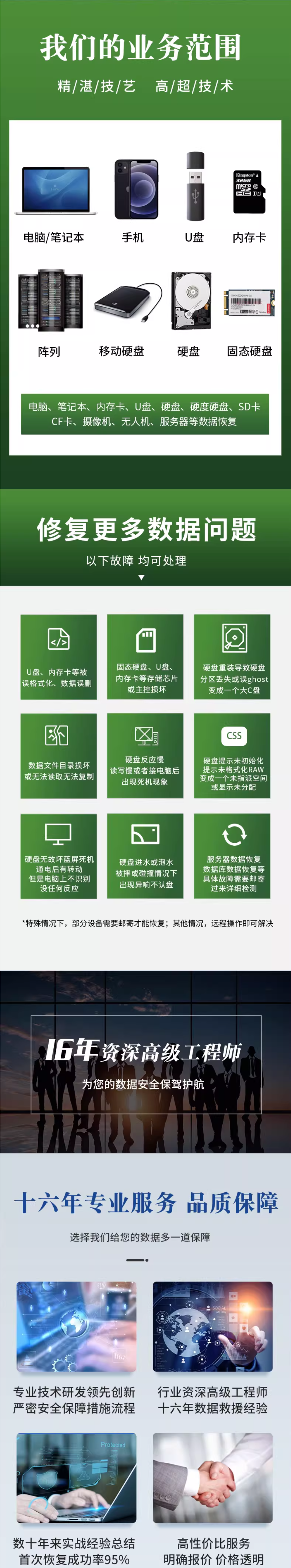 电脑移动硬盘数据恢复机械sd卡U盘文件修复固态远程数据库服务